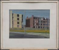 Marinus Conrad Petrus Rutjes (1911-1968), 'Buitenwijk', gouache op papier, r.o. gesigneerd -vervuiling tussen glas en lijst-, 38 × 53 cm