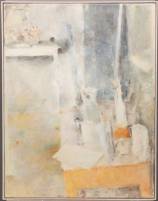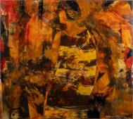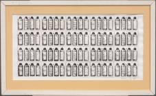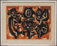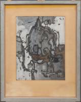 Ernest Vincent Hamel (1931), zonder titel, papier, inkt en krijt op paneel, in plexiglazen omlijsting -defecten aan omlijsting-, 50 × 65 cm