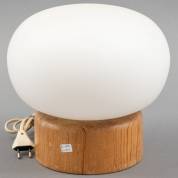 Tafellamp met grenen voet en melkglazen kap, uitvoering Bestform, Freundenberg, jaren '80, 28 × Ø 29 cm