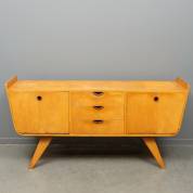 Berkenhouten dressoir met drie lades en twee klepdeurtjes, ontwerp Cor Alons, uitvoering Den Boer, Gouda, midden 20e eeuw -vocht- en fineerschades-