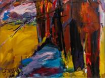 Gerda Elfring (1956), bomen langs een sloot, acryl op board, l.o. gesigneerd, 60 × 80 cm
