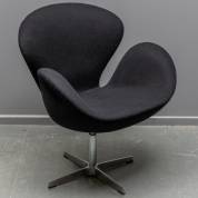 Draaistoel met zwarte stoffen bekleding op chromen draaipoot, reproductie naar ontwerp van Arne Jacobsen, uitvoering onbekend, modern, 82 × 73 × 73 cm