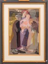 Anna Cornelia Boelhouwer (1918-2000), 'De baby', collage van textiel, l.o. gesigneerd onder pseudoniem Anni Apol, 52 × 34 cm