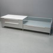 Stalen tv-meubel met grijze lades, glazen en marmeren blad, serie Minima, uitvoering MDF Italia -krasjes, gebruikssporen-, 216 × 60 × 48 cm