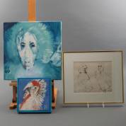 Drie werken: Jan Louis Vorkink (1933-2010), twee schilderijen en een inkttekening, alle gesigneerd en gedateerd '98-'00, 40 × 40 cm