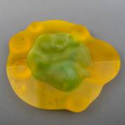 Coen Kaayk (1947-2014), deels gesatineerde geel en groene schaal met organische vormen, kunsthars, op bovenrand gemonogrammeerd -enkele krasjes, een chipje, gebruikssporen-, 5 × 44 × 40 cm