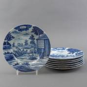 Zeven Delfts aardewerk maandborden, uitvoering De Porceleyne Bijl, laatste kwart 18e eeuw, bestaande uit: Maart, April, Junij, Julij, Augustus, September, en November -randschilfers en enkele chipjes, September met een barst-, Ø 25 cm