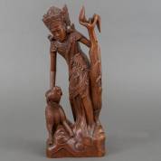 Gesneden houten beeld: man met geit, Bali, tweede helft 20e eeuw, hoogte 32 cm