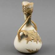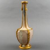 Porseleinen distelvaasje, uitvoering Amphora, RSTK, Turnterlitz Bohemia, Oostenrijk, circa 1900 -merkteken vervaagd, slechts enkele resten zichtbaar, enkele missende bolletjes van bovenrand, vergulding iets sleets-, 23,5 × Ø 15 cm