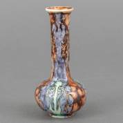 Plateel steelvaasje met gestileerd floraal decor, gemerkt, uitvoering Plateelbakkerij Rozenburg, Den Haag, hoogte 10,5 cm
