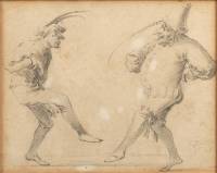Pieter Jansz. Quast (1606-1647), karikatuur van twee dansende mannen, potloodtekening met gewassen inkt, r.o. gesigneerd en gedateerd 1636 -grotendeels gebruind-, 15 × 19 cm