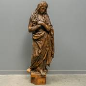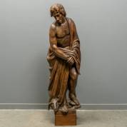 Eikenhouten beeld: heilige met touw om de middel, mogelijk Johannes de Evangelist, tweede helft 19e eeuw -vinger ontbreekt, schade aan tenen-, 112 cm