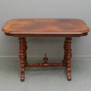 Notenhouten tafel met gedraaide poten en tussenregel, Engeland, 19e eeuw -gebruikssporen-, 75 × 119 × 77 cm