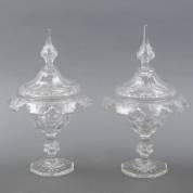 Paar kristallen dekselcoupes met accoladerand, 19e/20e eeuw -één dekselpunt bijgeslepen-, hoogte 30 cm