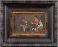 Hollandse School: kaartspelend gezelschap, olieverf op koper, niet gesigneerd, eind 18e/begin 19e eeuw -craquelé, beetje verfverlies-, 7,5 × 11,5 cm