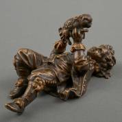 Bronzen sculptuur: jongetje speelt met zijn hondje, Duitsland, eerste helft 20e eeuw, 7,5 × 15,5 × 9 cm