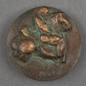 Bronzen legpenning: ruiters te paard, ontwerp Arthur Spronken voor de Vereniging van Penningkunst, 1967, Ø 4 cm