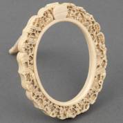 Ovaal ivoren portretlijstje met gesneden reliëfdecor van figuren in landschap, aan bovenzijde een blanco schildje, Kanton, China, 19e eeuw -kopie CITES EU-certificaat bijgevoegd, geen uitvoer buiten de EU, zonder glas en achterplaat-, 10,5 × 8,7 × 1,4 cm