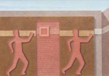 Erik Roos (1938-1994), 'Balkdragende figuren', kleurpotlood op papier, l.o. gesigneerd en gedateerd 1983, 27,5 × 19 cm