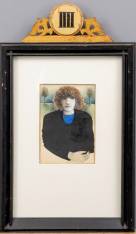 Anke Engelse (1944), portret van een vrouw met twee bomen, gemengde techniek op papier, r.o. gesigneerd en gedateerd 1976, 17 × 13 cm