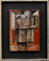 Frits van Eeden (1944-2022), figuur in vlakverdeling, gemengde techniek op paneel, r.o. gesigneerd en verso gedateerd 1975, 20 × 15 cm