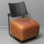 Fauteuil met bruin lederen zitkussen en zwart stalen rugleuning, ontwerp Oscar Inno Harri Korhonen, uitvoering Inno, Finland, eind 20e eeuw