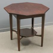 Achthoekig mahonie bijzettafeltje met geometrische intarsia in het blad, en een etagère, uitvoering Pander, jaren '20/'30, 64,5 × 69 × 69 cm -gebruikssporen-