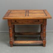 Rechthoekige tafel met onder het blad een lade, het onderstel met regelverbinding, 17e/18e eeuw -blad wijkt- 75 × 103 × 75 cm