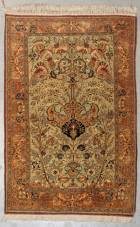 Turks zijden tapijt Hereke met vogel- en bloemdecor -(egaal) verkleurd-, 133 × 85 cm