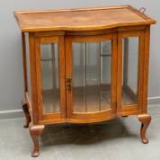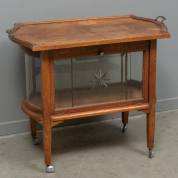 Eiken theekastje met twee vitrinedeurtjes en glas aan beide zijden, art deco, jaren '20/'30 -blad met slijtageplekken, gebruikssporen-, 93 × 74,5 × 40 cm