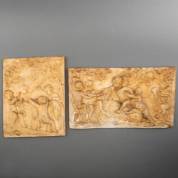 Twee gipsen reliëfs: putti in de weer met geiten, één achterop onduidelijk gesigneerd: J Janssens Roerman / Boerman / Bierman? en gedateerd 1882, het andere gemerkt CNL6, 40 × 31 cm en 31 × 53 cm