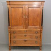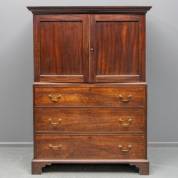 Mahonie kast met twee paneeldeuren en drie lades, Engeland, begin 19e eeuw -samengesteld, gebruikssporen-, 165 × 120 × 55,5 cm
