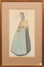 Willem Hendrik van den Berg (1886-1970), Scheveningse vissersvrouw, offsetdruk, r.o. gesigneerd en gedateerd 1932 -scheurtje links midden, vlek midden onderin-, 37 × 20 cm