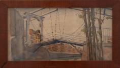 Hollandse School: ophaalbrug, aquarel, l.o. gesigneerd A. v Alphen, 27 × 14 cm