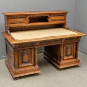 Eiken bureau met opstand en gezwarte details, neorenaissance -gebruikssporen-, 117 × 154 × 95 cm