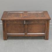 Eiken panelenkist met gesneden decor, 17e/18e eeuw, 45 × 91 × 47 cm