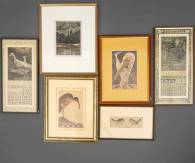 Theo van Hoytema (1863-1917), zes verschillende litho's in lijst, de kalenderbladen meten 44 × 21 cm
