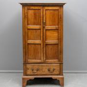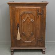 Tweedeurs eiken kast met lade, de deurtjes en zijwanden met drie panelen, 18e eeuw -sluitwerk van later datum, krimpscheuren-, 162 × 88,5 × 51 cm
