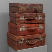 Vier diverse krokodillenleren koffers -gebruikssporen, één met los hengsel-, grootste 21 × 55 × 40 cm