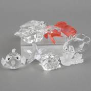 Swarovski, zes beeldjes: paar zeehonden, zeester, schelp, en drie diverse vissen, zeehonden 5 × 10 × 7 cm