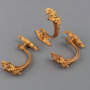 Drie verguld messing embrasses met decor van pijlenkokers, toortsen en guirlandes, eind 19e eeuw, 12 × 4 × 12,5 cm