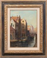 Jurriën Marinus Beek (1879-1965), Rotterdamse binnengracht met boten, olieverf op doek, l.o. gesigneerd, 34 × 24 cm