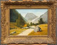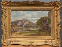 Hollandse School: rivier door berglandschap, olieverf op paneel, gesigneerd r.o. J. Haas, 34,5 × 21,5 cm