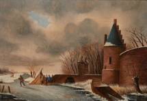 Hollandse School: wintergezicht, olieverf op paneel, r.o. onduidelijk gesigneerd, 19e eeuw -schade midden onderin-, 21,5 × 31 cm