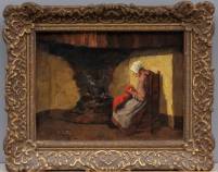 Hendrikus J. van Langen (1874-1964), handwerkende vrouw bij het vuur, olieverf op board, l.o. gesigneerd, 23 × 17 cm