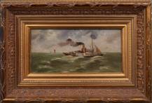Hollandse School: raderstoomboot op zee, olieverf op board, l.o. gesigneerd Jan Decker, 22,5 × 10,5 cm
