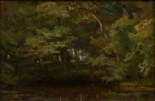 Jan Willem van Borselen (1825-1892), vijver in het bos, olieverf op paneel, l.o. gesigneerd, 13 × 19 cm