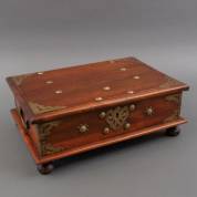 Koloniale hardhouten bijbel- of documentenkist met messing beslag, 19e eeuw -sluiting van het slot afwezig-, 16 × 42,5 × 30 cm