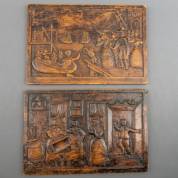 Twee gesneden houten paneeltjes: de ontsnapping van Hugo de Groot uit Slot Loevestein, 20e eeuw, 23 × 34 cm