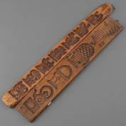 Twee houten koekplanken -gebruikssporen-, lengte 66 cm en 59 cm